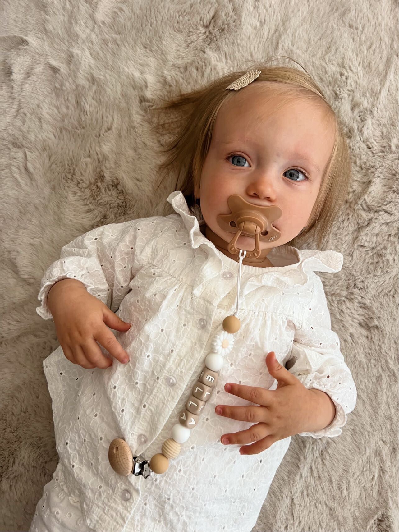 "Ik ben superblij met mijn speenkoord! De kwaliteit is top, stevig en veilig voor mijn baby. De naam erop maakt het extra persoonlijk en uniek. Staat ook nog eens heel leuk bij elke outfit. Echt een aanrader voor elke ouder of als kraamcadeau"